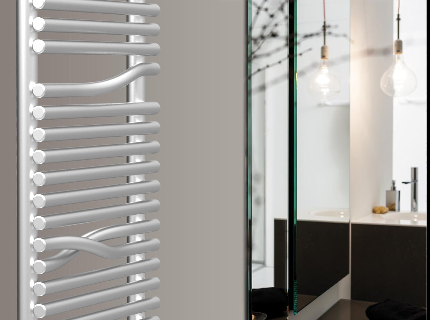Thanks to its dynamic but measured design, the Serendipity towel warmer lends itself to be installed in many different types of rooms from bathroom, succeeding from time to time to establish a cordial but effective dialogue with the context. Serendipity is a towel warmer a compound hydraulic operation from tubular elements of 24 mm of diameter arranged horizontally. Between one element and another there is one space of 12 mm. Full and empty with the their plot define a rectangle, vertically oriented, of 500x1200 mm.